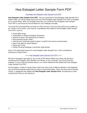 Download hoa estoppel letter sample form Kindle Editon online is a convenient and frugal way to read hoa estoppel letter sample form you love right from the comfort of your own home. Yes, there sites where you can get Kindle Editon "for free" but the ones listed below are clean from viruses and completely legal to use.